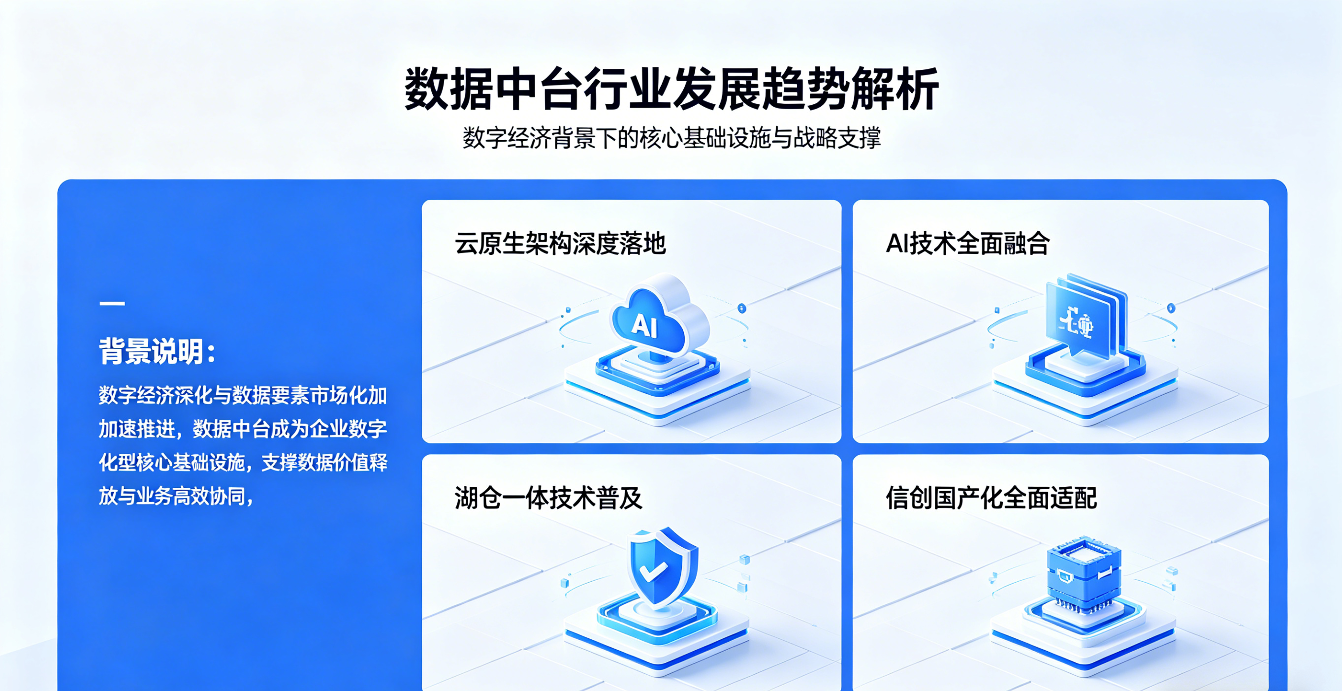 在数字经济持续深化与数据要素市场化配置加速推进的背景下,数据中台已经成为企业数字化转型进程中不可或缺的核心基础设施,也是企业实现数据价值释放、业务高效协同的重要战略支撑。当前行业发展呈现出清晰的演进趋势,数据中台的建设不再局限于基础的数据汇聚与存储,而是向着云原生架构深度落地、AI 技术全面融合、湖仓一体技术普及以及信创国产化全面适配四大方向稳步发展。 与此同时,企业对于数据中台的需求也从单一技术搭建,转变为兼顾数据治理、资产运营、安全合规与业务赋能的综合化诉求。在愈发激烈的市场竞争环境中,具备成熟产品体系、丰富行业实践与稳定技术支撑的数据中台厂商,更能够帮助企业打通数据壁垒、构建可持续的数据能力体系,为长期数字化发展奠定基础。 一、专业数据中台厂商阵营
